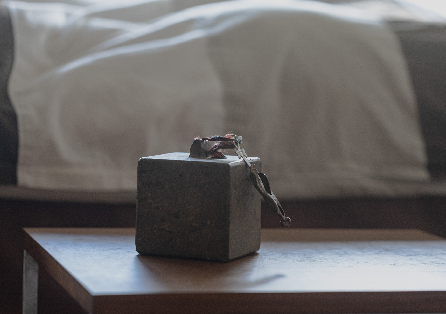 和裁をしていた亡き母の形見。布をはさんで縫うための道具で、置いてあるだけで趣があります。何より、道具についている顔のモチーフがとても可愛くお気に入り。